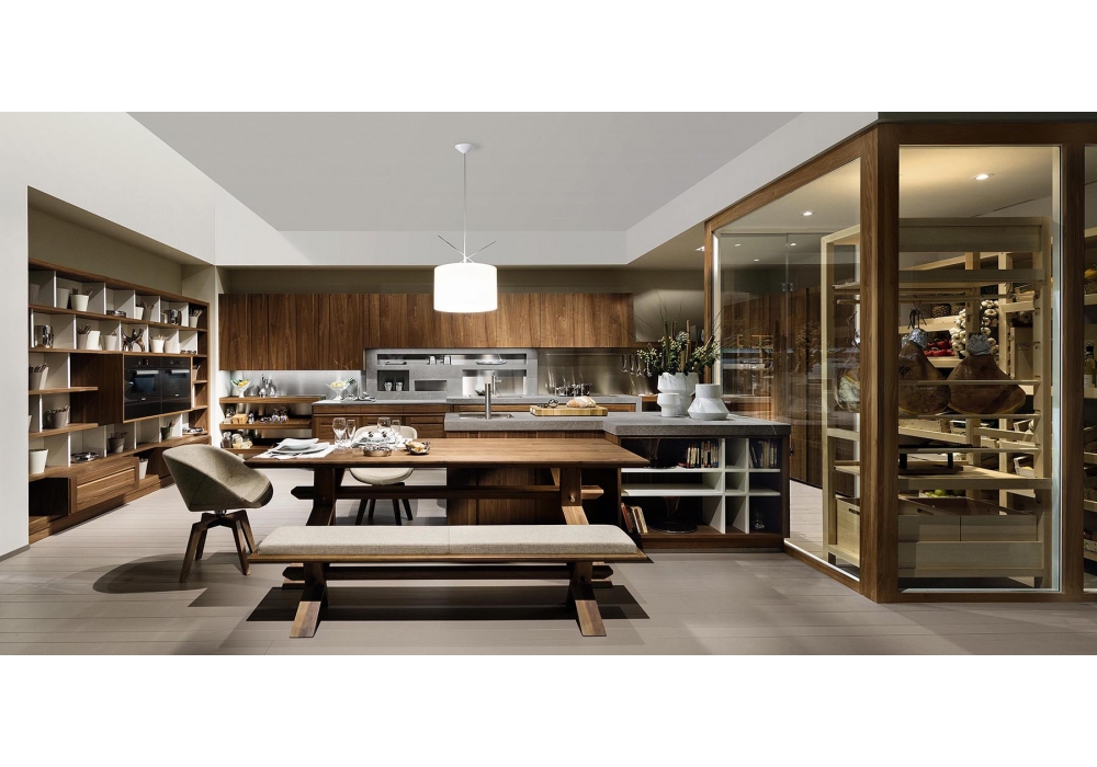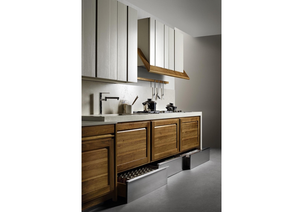 Canaletto diseñada por L'Ottocento es una cocina en nogal canaletto sólido que le da al ambiente personalidad y elegancia con proporciones impresionantes y líneas fluidas. Disponible en diferentes acabados y composiciones.