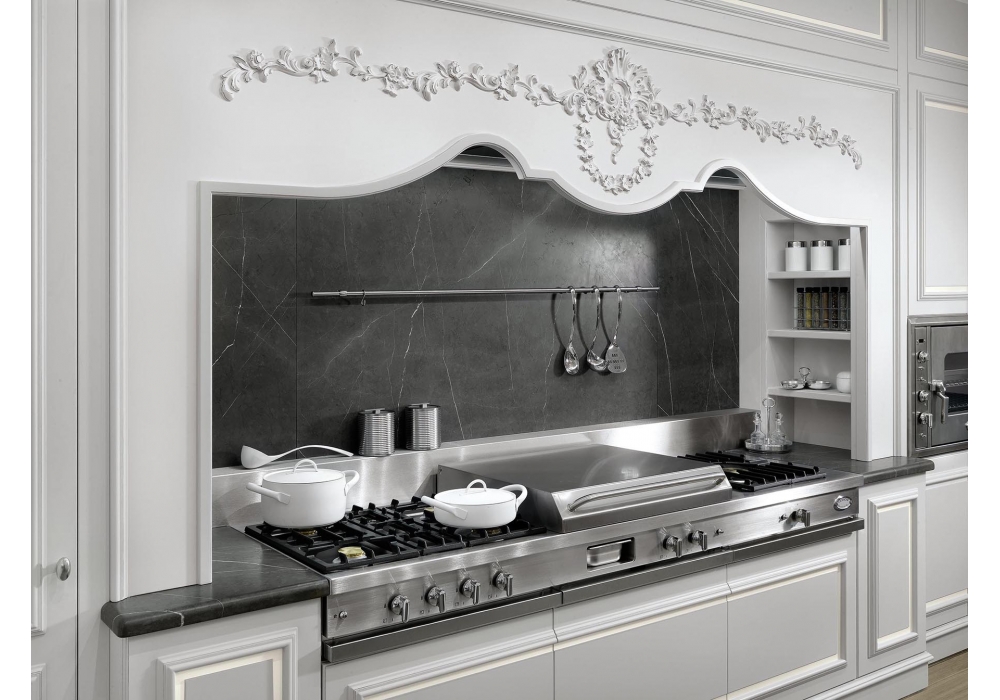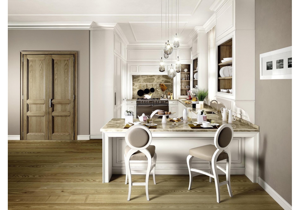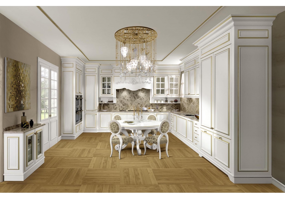 Floral diseñada por L'Ottocento es una cocina que se ofrece como un claro homenaje a una elegancia clásica y romántica. Disponible en diferentes acabados y composiciones.