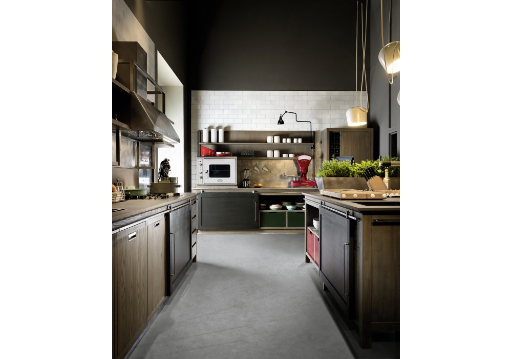 Industrial Chic diseñada por L'Ottocento es una cocina que mira al estilo postindustrial reexaminándolo en clave elegante y doméstica. Personalizable con diferentes composiciones y acabados.