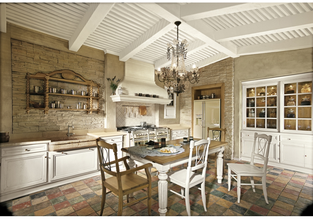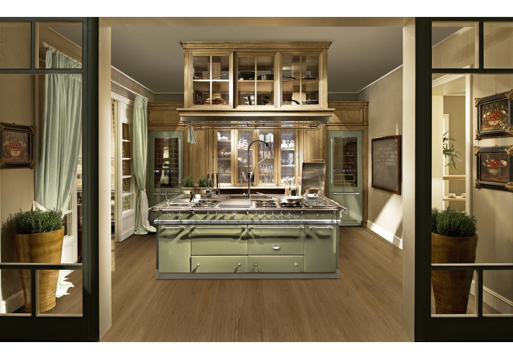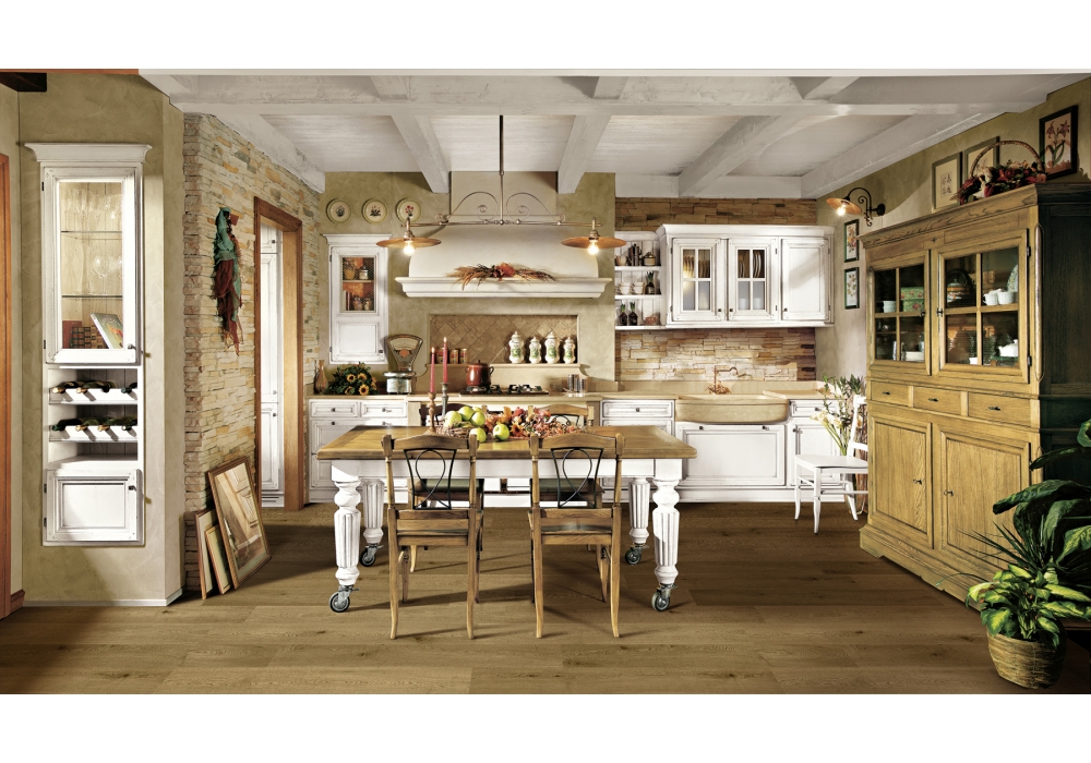 Old Style diseñada por L'Ottocento es una cocina que recuerda las formas típicas de los entornos rurales y está disponible en diferentes acabados y composiciones.