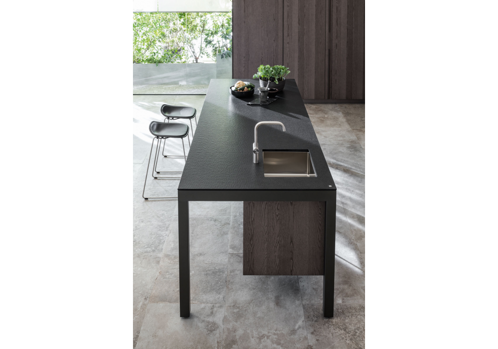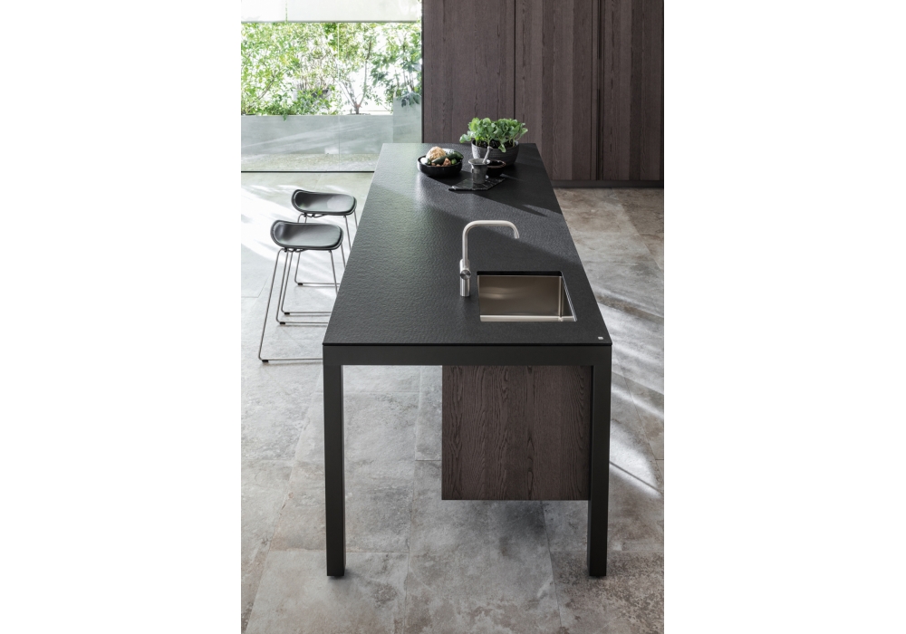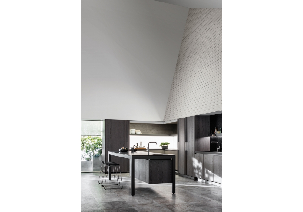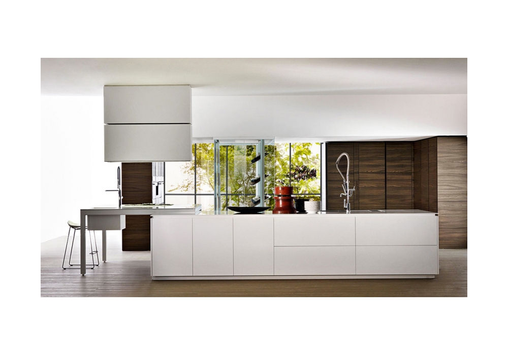 Banco diseñada por Luca Meda para Molteni&C es una cocina con una sólida estructura de aluminio. Las puertas pueder ser lacade o en madera, mientras que las partes superiores en laminado, en fenix®, cartapietra, dekton, silestone, piedras naturales, vidrio, corian® o acero inoxidable.