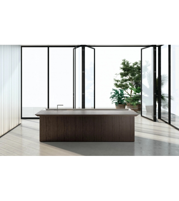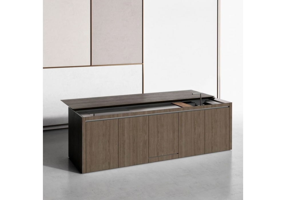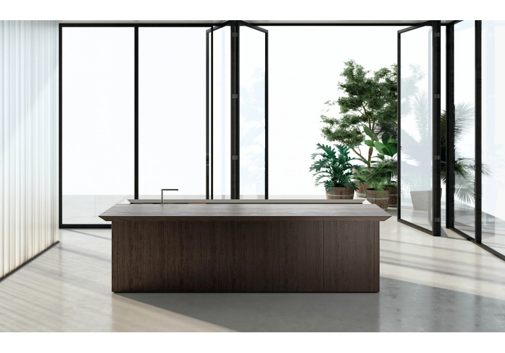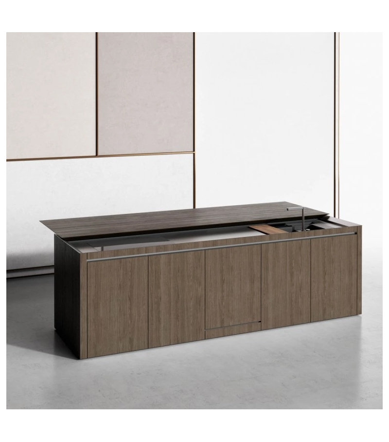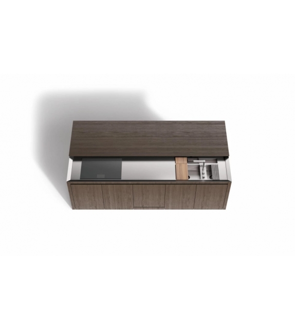 K6 diseñada por Norbert Wangen para Boffi es una cocina con superficie deslizante en profundidad. Es parte de la serie "K".