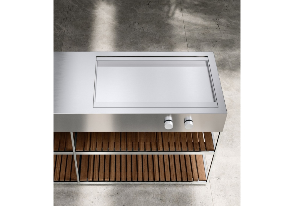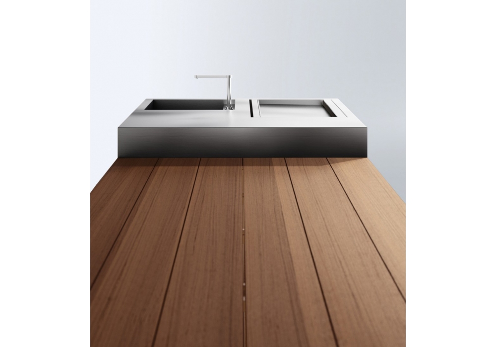 AH01Outdoor diseñada por Alessandro Andreucci & Christian Hoisl para Boffi es una cocina compuesta por bloques de acero inoxidable y especialmente diseñada para uso en exteriores, se basa en una estructura tubular de acero inoxidable e incluye tres módulos separados: para cocinar, lavar y preparar. versiones de pared o de isla - o monobloques que contienen las tres funciones, también de pared o de isla.