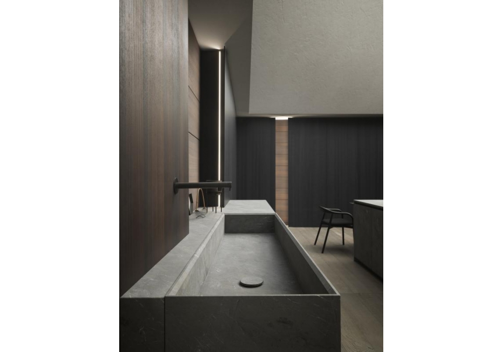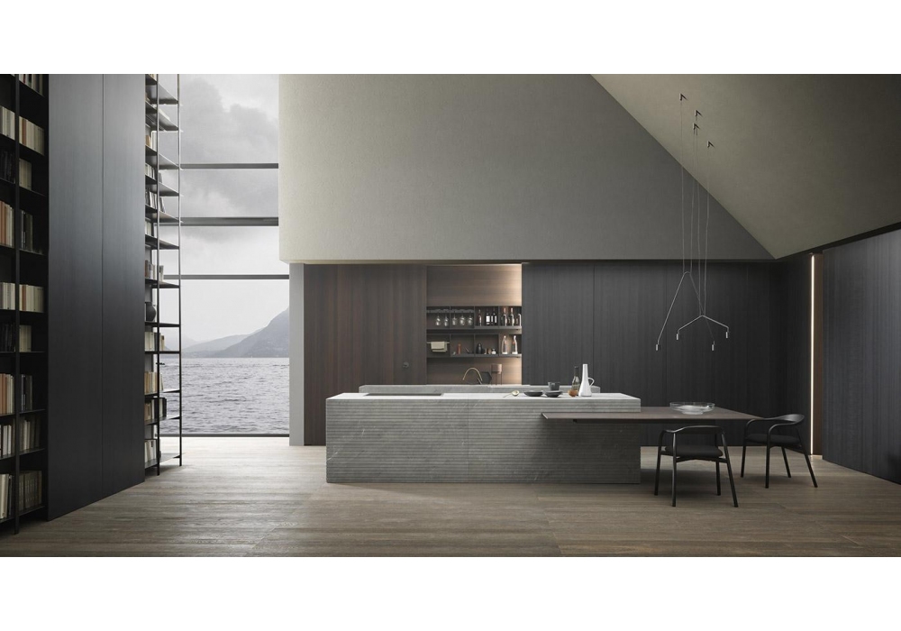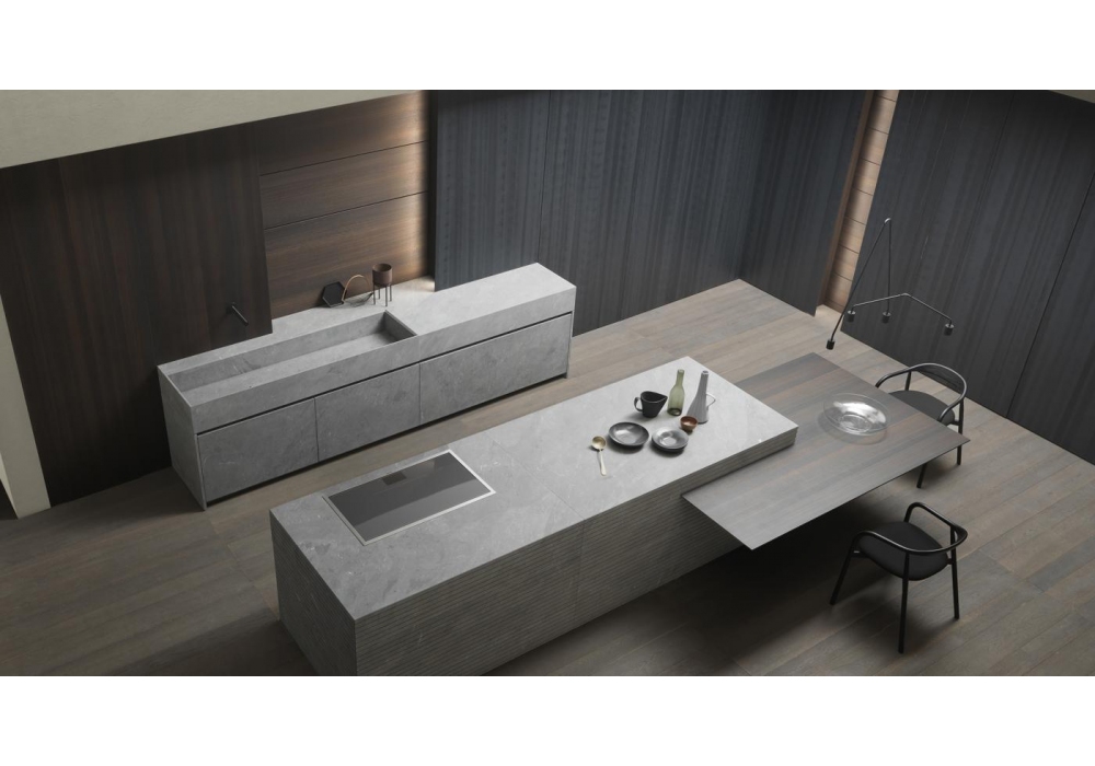 Blade Lab diseñada y producida por Modulnova es una cocina con acabado disponible en mármol, granito o piedra, en diferentes colores. La artesanía en el procesamiento de la materia prima hace que este sistema sea único, al igual que la flexibilidad de las soluciones de diseño que permite.