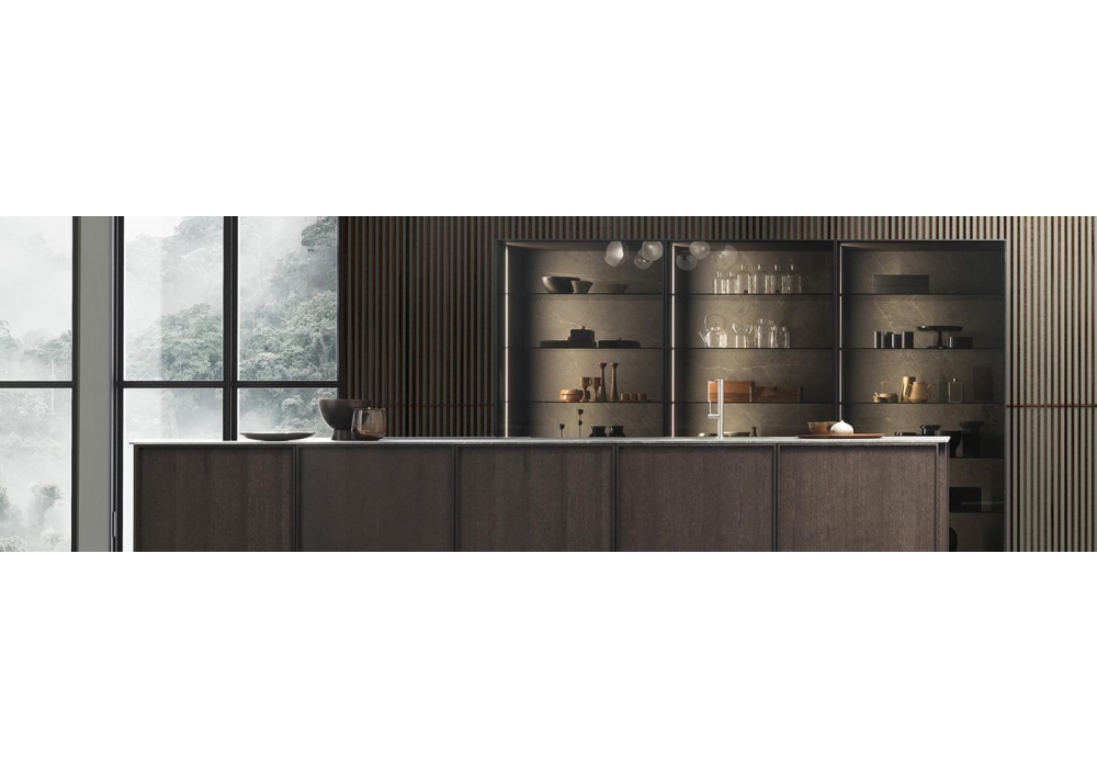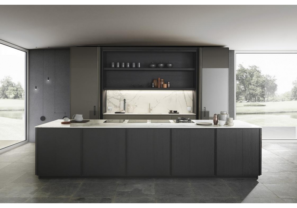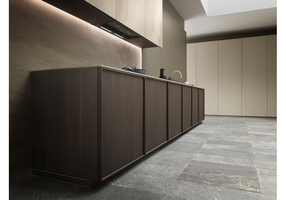 Frame diseñada y producida por Modulnova es una cocina de nuevo concepto, con puerta de fino marco y tirador obtenido en el perímetro. La gran isla central es horizontal con una península en voladizo, completada por columnas refinadas y elegantes. La combinación de varios materiales la convierte en una cocina funcional y práctica. Contacta con nuestro Servicio de Atención al Cliente para crear tu Marco, con las características que prefieras.