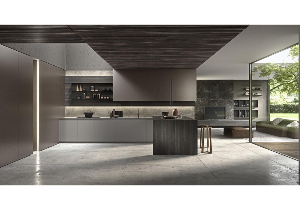 Twenty diseñada y producida por Modulnova es una cocina que combina hábilmente volúmenes y materiales. La encimera puede ser de roble en milltech o laminado; está integrado en la boiserie, con iluminación LED. Los finos espesores se ven realzados por baldas de hierro, que pueden combinarse con materiales como la piedra Piasentina. Contacta con nuestro Servicio de Atención al Cliente para crear tu Twenty, con las prestaciones que prefieras.