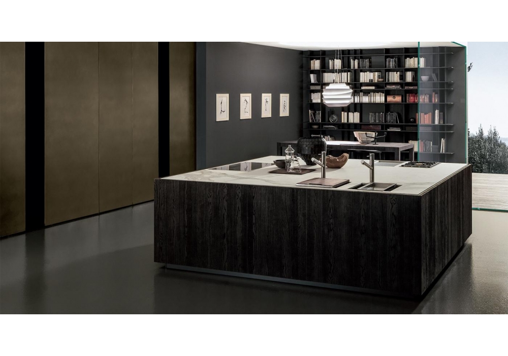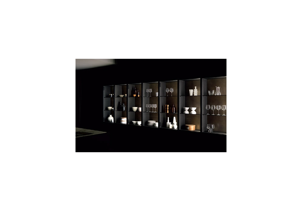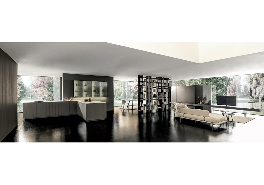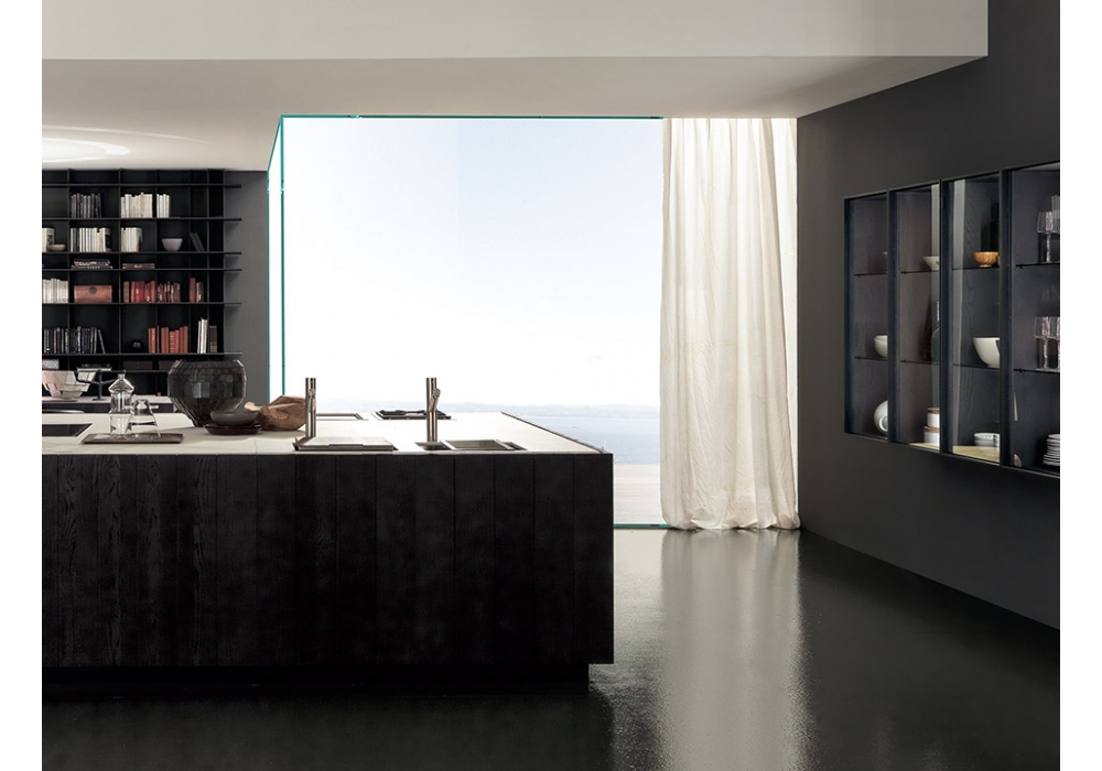 Float diseñada y producida por Modulnova es una cocina con volúmenes importantes, cromaticidad intensa y elegancia posible gracias al uso de materiales preciosos. Las vitrinas están disponibles en varias alturas, caracterizadas por un marco de aluminio anodizado, puertas y estantes en vidrio ahumado y equipadas con una particular bisagra que desaparece en el perfil de la puerta. La estructura es de listones de roble u otros materiales. La bodega Float, en listones de madera, está equipada con puertas y baldas muy funcionales. Contacta con nuestro Servicio de Atención al Cliente para crear tu Flotador, con las características que prefieras.