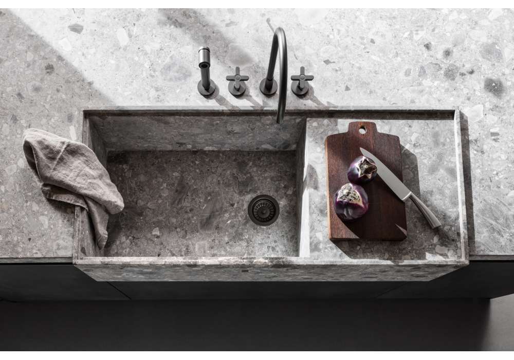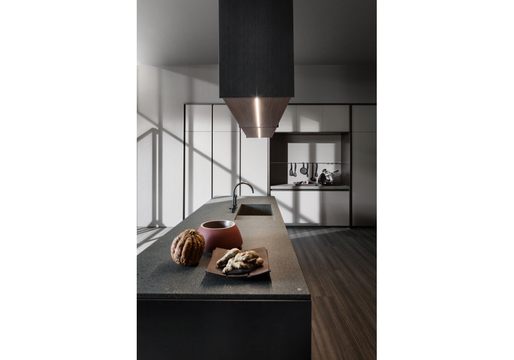 VVD diseñada por Vincent Van Duysen para Molteni&C es una cocina sin tirador, que se basa en el contraste entre los espesores de los lados y terminales y los fuertes espesores de las encimeras, que se integran, interrumpiendo la linealidad de la encimera, con la piedra. Completan el proyecto bandejas extraíbles, cajones abiertos y carros integrables en los bajos. La innovación se expresa con detalles tecnológicos como la barra LED integrada, el perfil de aluminio que diseña discretamente la manija de la puerta, mejorando su agarre y la innovadora bisagra pivotante que permite que las puertas se abran a 180°, haciendo que el espacio interior sea más aprovechable.