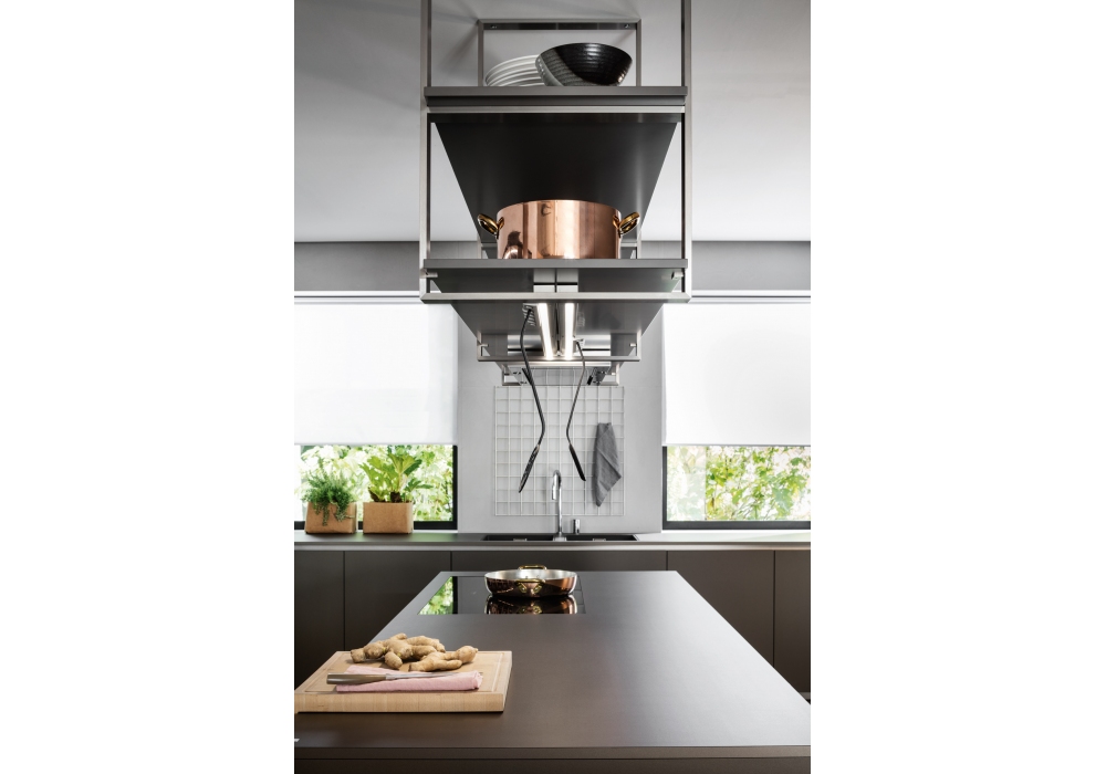 Hi-Line 6 diseñada por Ferruccio Laviani para Molteni&C es una cocina simple y lineal. Un espacio organizado con esprit de géométrie combinado con formas rigurosas, riqueza de detalles y atención a la calidad de la construcción. Las bases son más altas, para contener todo y mejor. Lejos del concepto clásico de cocina, Hi-Line 6 permite numerosas posibilidades compositivas. Sin tirador pero con una ranura para abrir y cerrar las puertas.