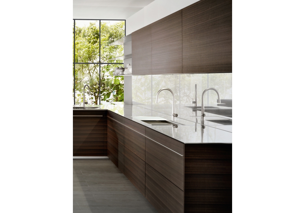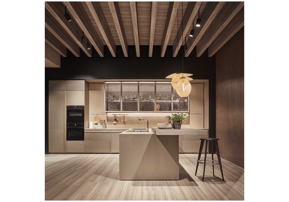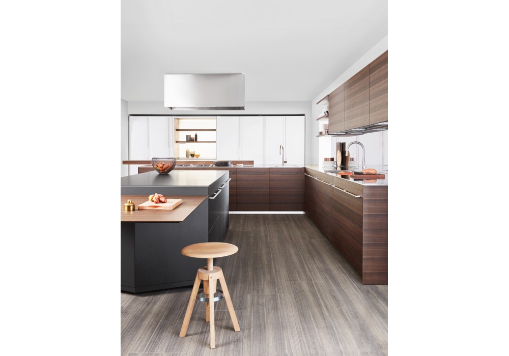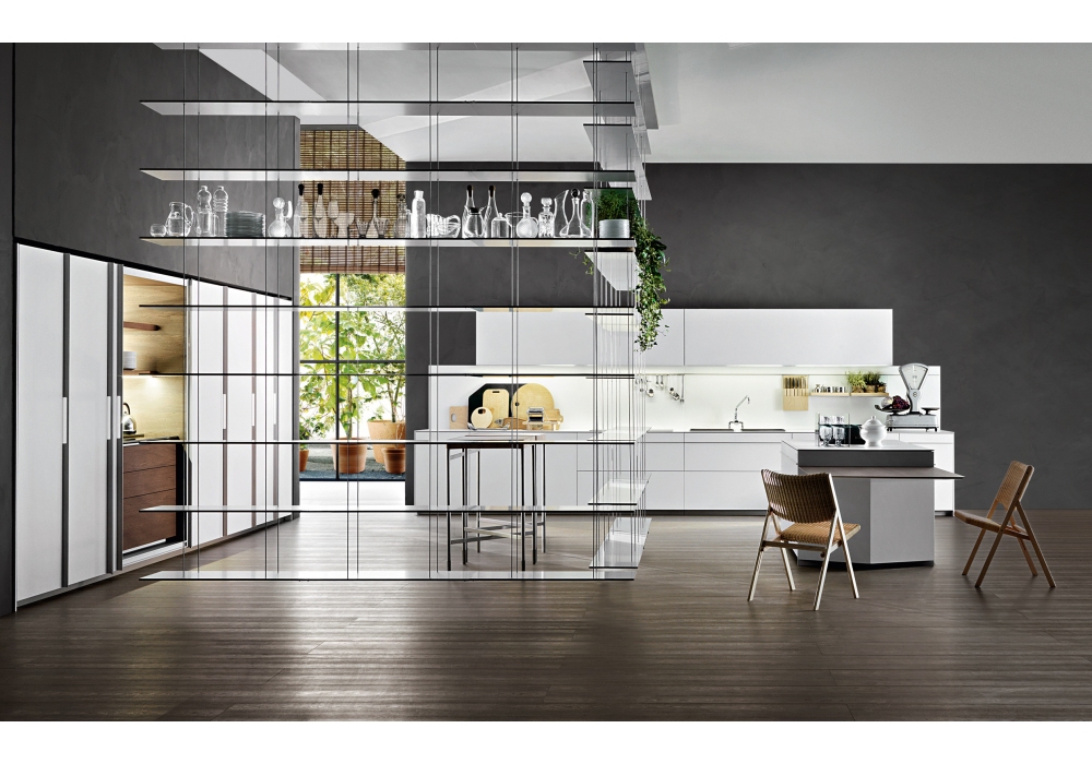 Vela diseñada por Dante Bonuccelli para Molteni&C es una cocina de diseño clásico. La técnica constructiva evoluciona y estratifica diferentes materiales, compensando tensiones y diseñando nuevas proporciones y detalles técnicos diferenciadores, como el nuevo mecanismo de apertura abatible que permite un particular giro de la puerta. La superposición de líneas finas caracteriza las tapas, que ocultan la tecnología de procesamiento.