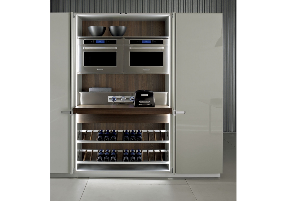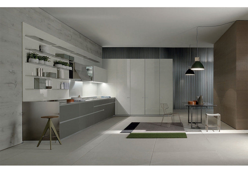 Icon 04 diseñada por Ernestomeda es una cocina. Juegos de luces, reflejos y diseño minimalista. El vidrio en la cocina ilumina el espacio y hace que el ambiente sea brillante y dinámico. El estilo contemporáneo y el diseño esencial se cuentan a través de las características intrínsecas de este material, el vidrio, utilizado para las puertas de los muebles bajos.