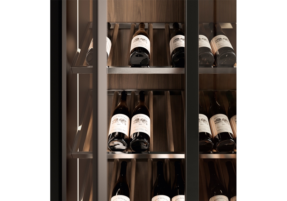 One 01 diseñada por Ernestomeda es una cocina lineal con un diseño contemporáneo. Los elementos abiertos equipados y los amplios armarios con efecto monolítico permiten una gestión óptima del espacio.