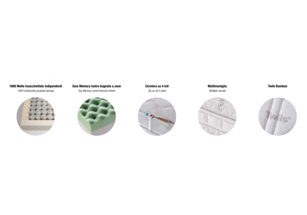Princess diseñado y producido por Twils es un colchón con 1600 muelles ensacados independientes, equipado con cremallera en los 4 lados y multiasa lateral. Contiene caja Aquatech con losas Soia Memory gofradas en zonas y largueros reforzados. Funda exterior desenfundable en tejido Twils Bamboo. Disponible en varios tamaños. 28 cm de altura.