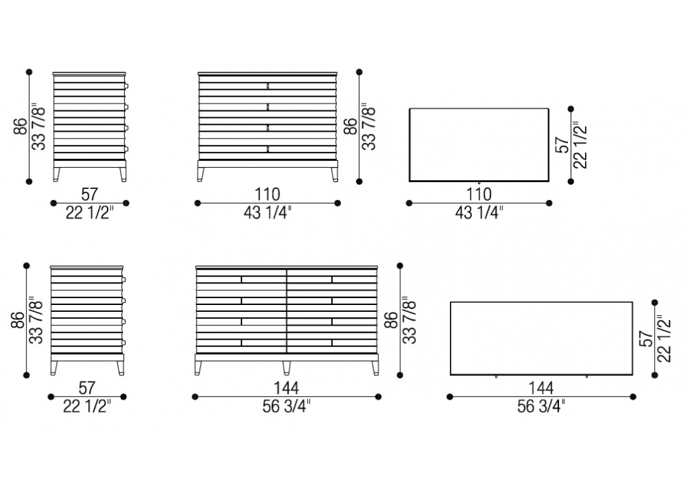 | Dimensiones | 110 x 57 x H 86 cm (4 drawers); 144 x 57 x H 86 cm (8 drawers) |