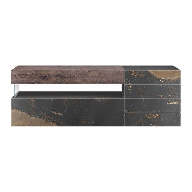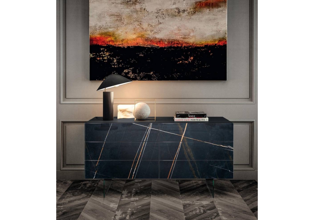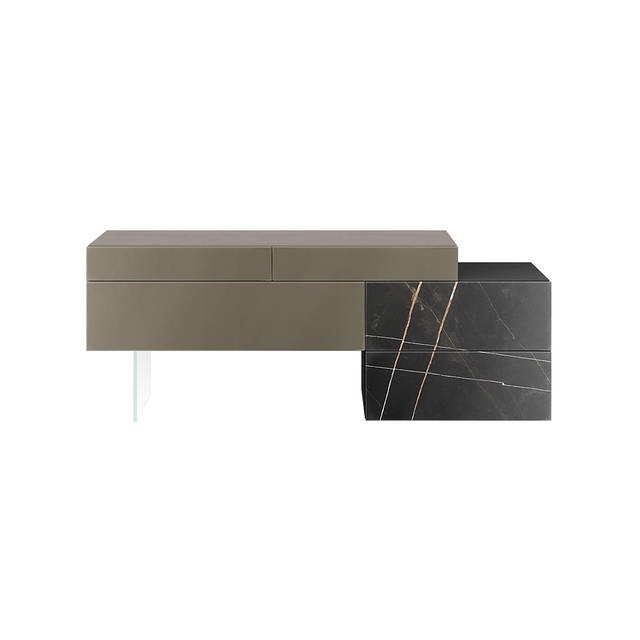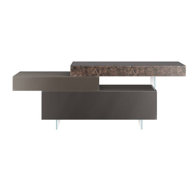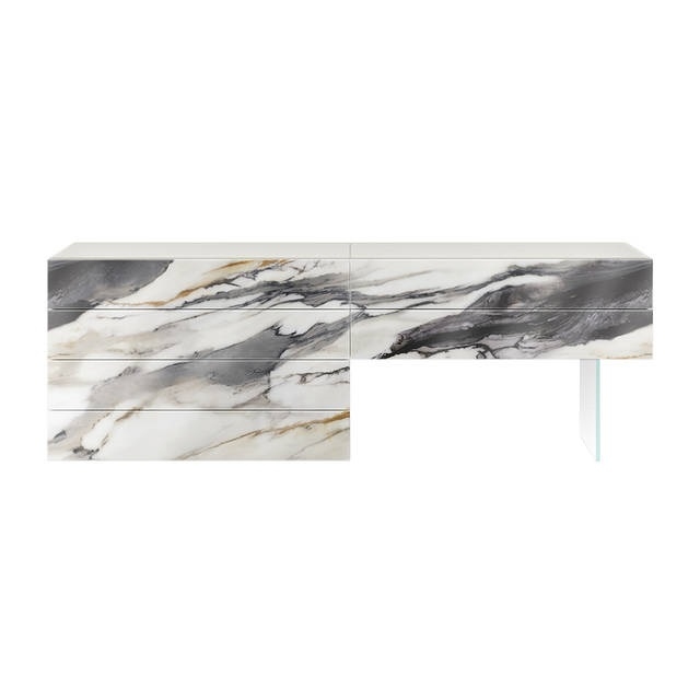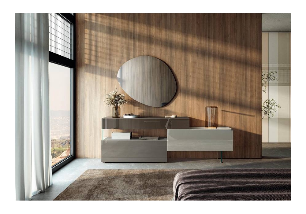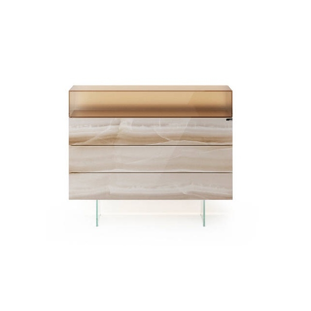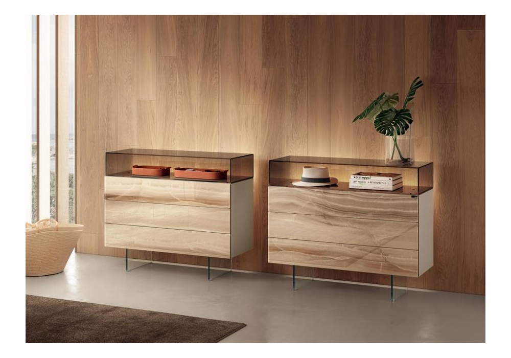 36e8 diseñada por Daniele Lago es una cómoda disponible en diferentes modelos. Entre los materiales utilizados se encuentran: madera Wildwood, madera lacada, vidrio y vidrio xglass. Disponible con patas en cristal templado, con patas o fijadas a la pared.