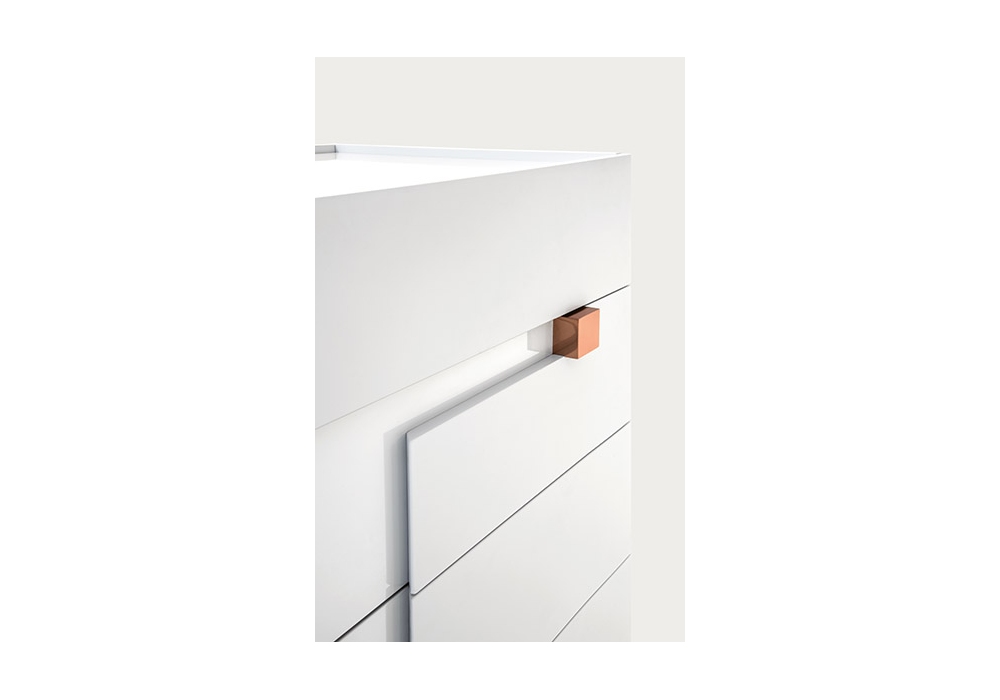 Logos diseñada por Calvi Brambilla para Pianca es una cómoda con estructura realizada en paneles de partículas de madera en Essenza o lacado brillante o mate. Tapa y frentes con bordes en material sintético. La tapa siempre tiene el mismo acabado que los frentes internos. Decoración metálica. Disponible en diferentes acabados y dimensiones.