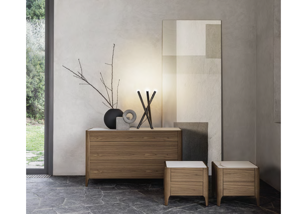 Cross diseñada por Riflessi es una cómoda con estructura de madera de fresno en diferentes acabados y tapa de cerámica.