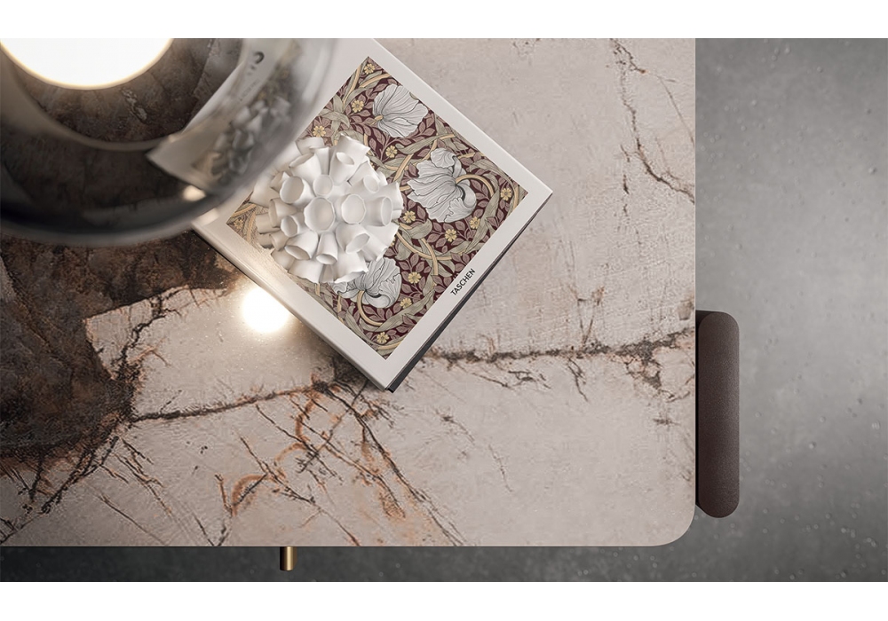 Julian diseñada por Tosca Design para Cattelan Italia es una cómoda con tres cajones en nogal Canaletto o roble ahumado. Estructura en madera pintada gofrado bronce y detalles en acero pintado latón. Sobre en cerámica Marmi, en diferentes acabados o en cristal espejado bronce.