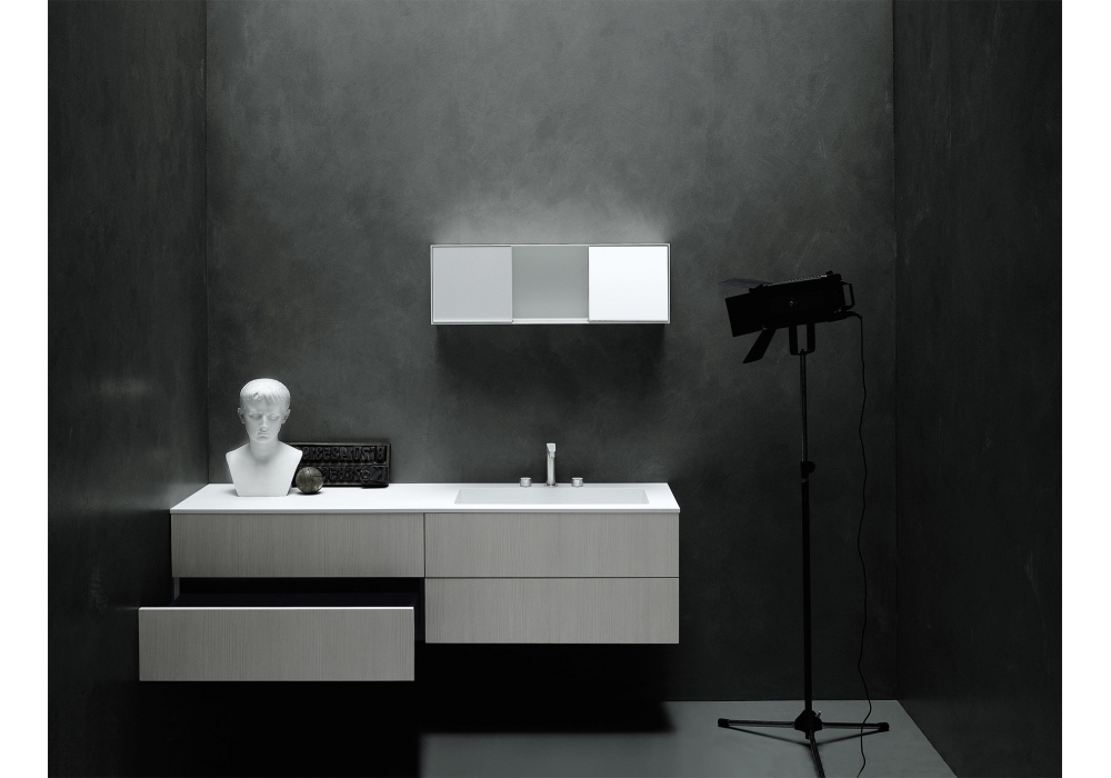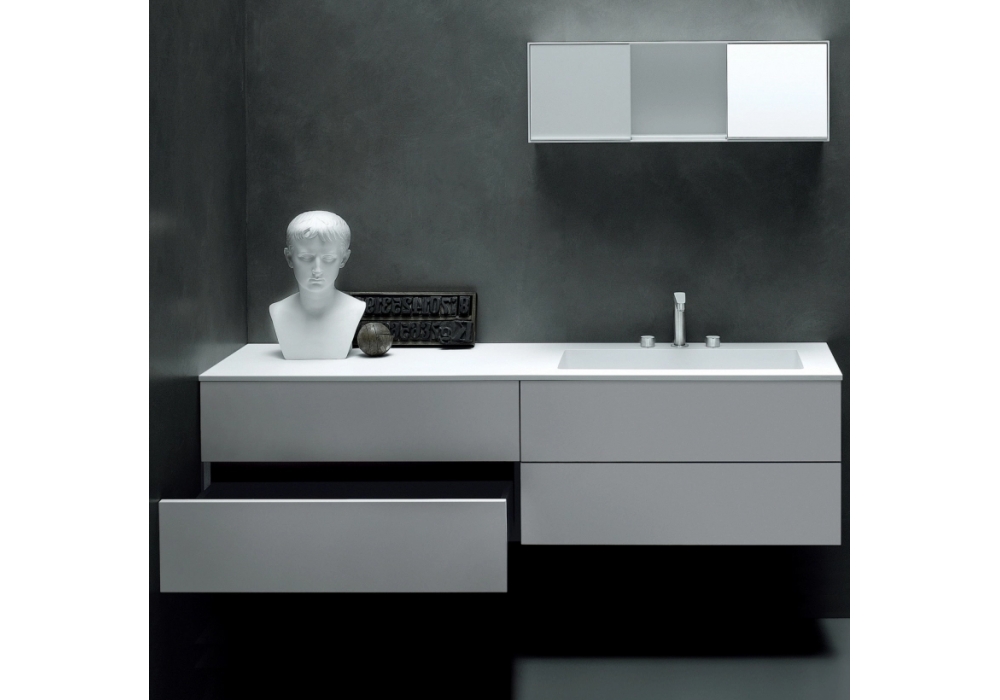 Simple diseñado por Piero Lissoni Para Boffi es un sistema de baño modular con contenedores sin mango y puertas batientes, puertas de extracción simple o cajones. Disponible en diferentes acabados.