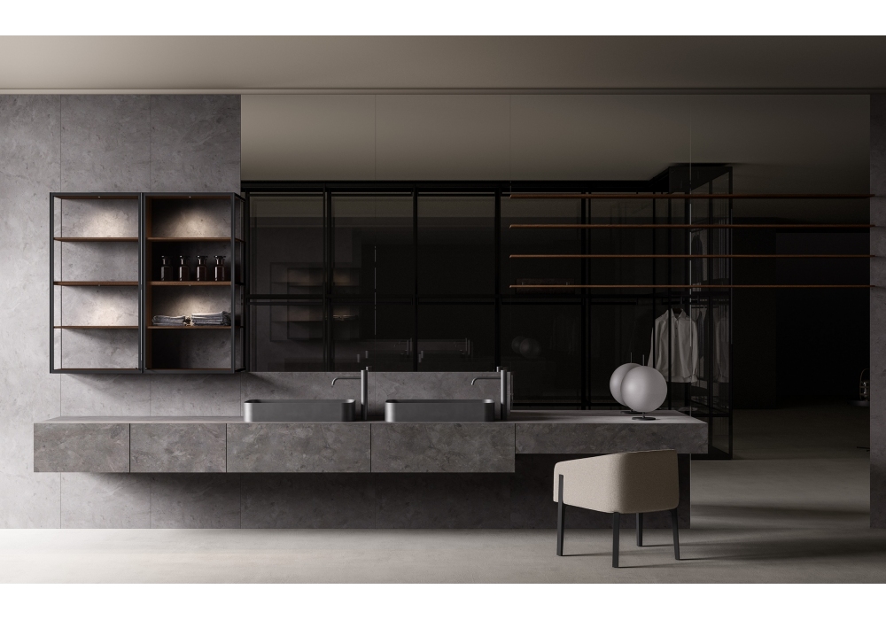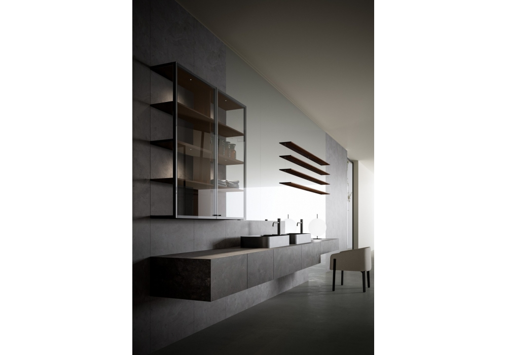 Upper Boiserie diseñado por Piero Lissoni + CRS Boffi es un sistema de baño modular de revestimiento de paredes con estantes y fondos sobre una estructura portante de aluminio. Disponible en diferentes acabados. Contacta con nuestro servicio de atención al cliente para diseñar tu unidad.