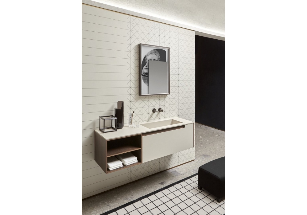 Ombra diseñado por Antonio Lupi es un sistema de diseño puro y atemporal, con una geometría sencilla y una estructura rigurosa, realzada por acabados de alta calidad. El tirador integrado en la puerta se convierte en el sello distintivo del proyecto. Fabricado con un núcleo laminado y una capa exterior personalizable en madera, laca u otros materiales, ofrece infinitas combinaciones de texturas, colores y configuraciones, incluyendo compartimentos abiertos, cajones y unidades de almacenamiento. La ranura continua y fresada con precisión realza la sofisticación de la fabricación y confiere a la pieza un aspecto elegante y contemporáneo.