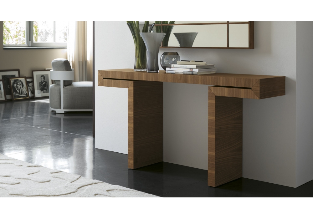 Miyabi diseñada por G. Viganò para Porada es una consola realizada en madera de nogal canaletta o roble spessart. También disponible en 2 medidas.