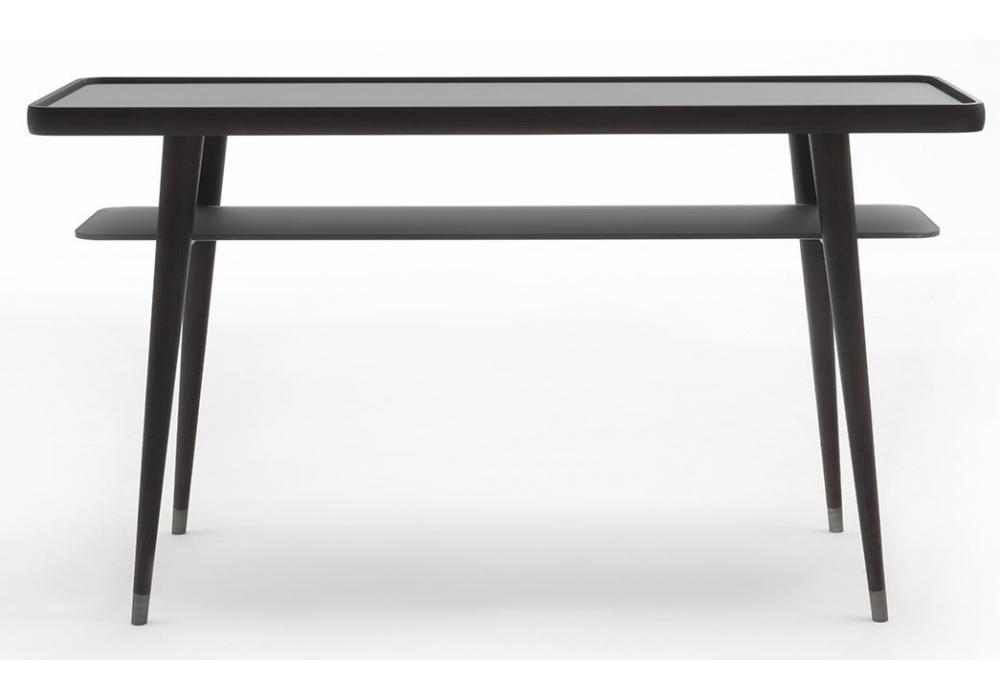 Chantal diseñada por E. Garbin y M. Dell'Orto para Porada es una consola con estructura en fresno macizo o lacado opaco poro abierto y pies en antracita cepilladas. Los estantes están disponibles en cristal retrobarnizado o en mármol.