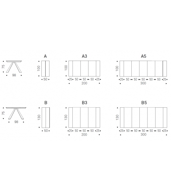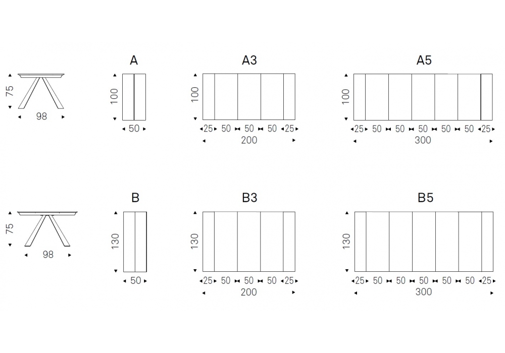 | Dimensiones | 100 x 50 x H 75 cm; 100 x 50→200 x H 75 cm; 100 x 50→300 x H 75 cm; 130 x 50 x H 75 cm; 130 x 50→200 x H 75 cm; 130 x 50→300 x H 75 cm. |