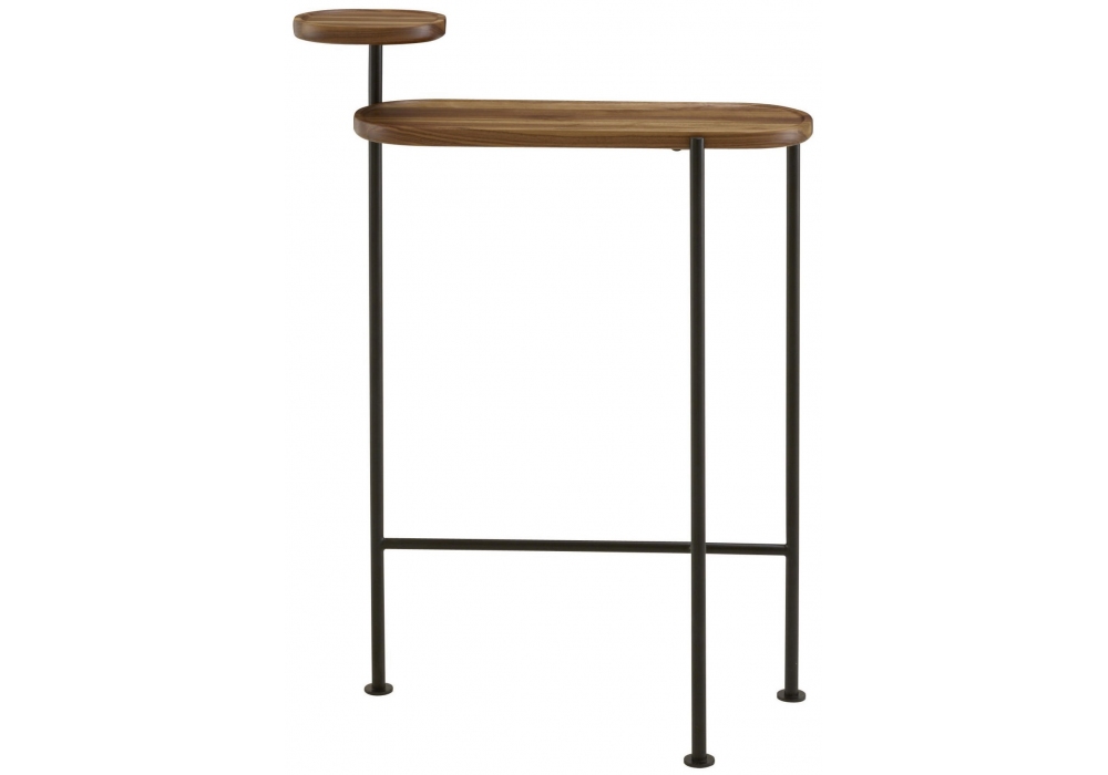 Loomy diseñada por Roberto Paoli para Ligne Roset es una consola con estructura en tubo de acero negro satinado Ø 2 cm y superficie en nogal americano macizo barnizado satinado natural. Debe fijarse a una pared.