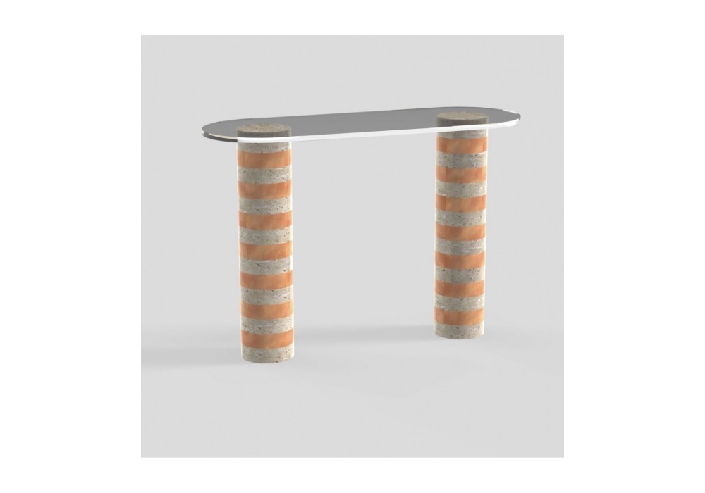Architexture Console diseñada por Patricia Urquiola para Budri es una consola realizada con dos patas rayadas en mármol y sobre en vidrio templado extraclaro. Disponible en 2 acabados.