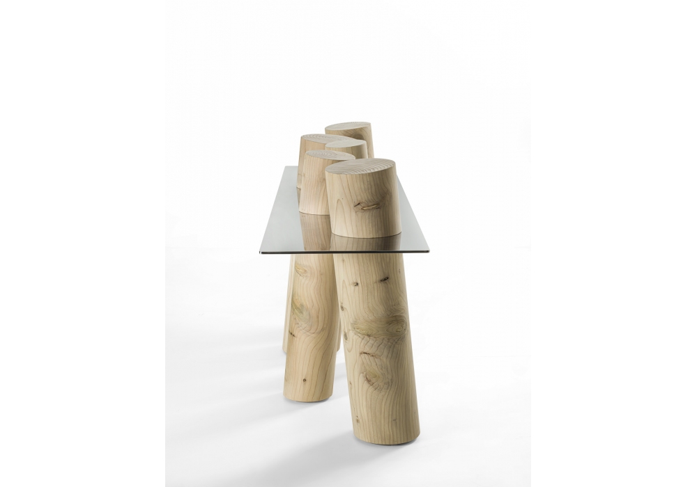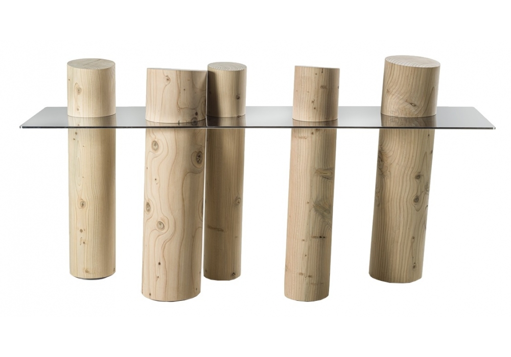 Venice Cedro diseñada por Claudio Bellini para Riva 1920 es una consola caracterizada por una tapa de acero pulido o vidrio combinada con una serie de postes de madera maciza de cedro. Disponible en diferentes dimensiones.