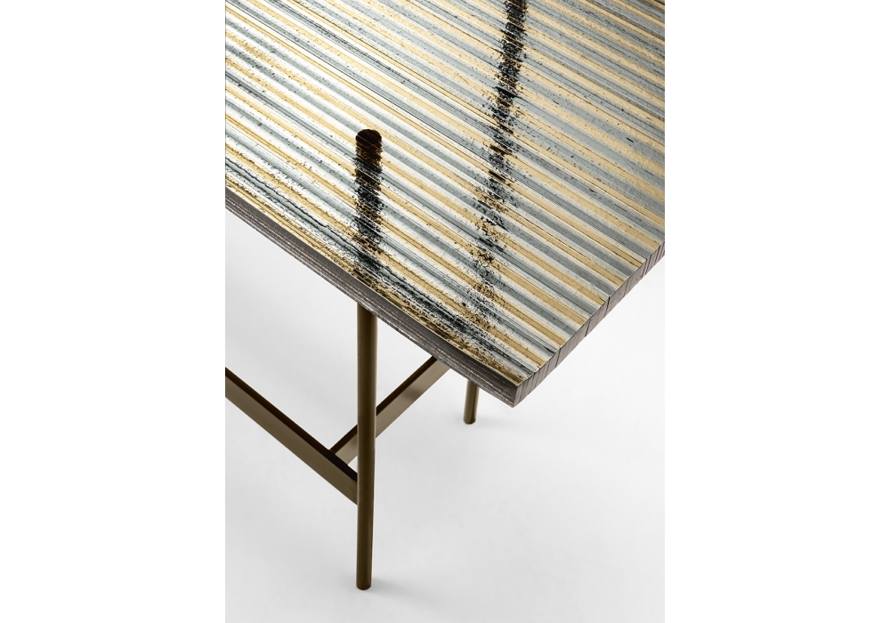 Waves diseñada por Ludovica + Roberto Palomba para Fiam es una consola con tapa realizada en Vidrio DV transparente, rayas de colores o mármol. La base es de metal con acabado Titanio mate o Níquel negro brillante.