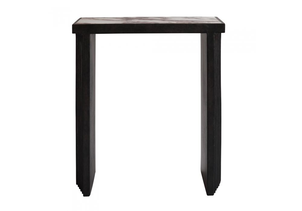 Arc diseñada por Kristian Sofus Hansen & Tommy Hyldahl para 101 Copenhagen es una consola realizada en fibra de cemento en acabado café, sobre en mármol Calacatta.