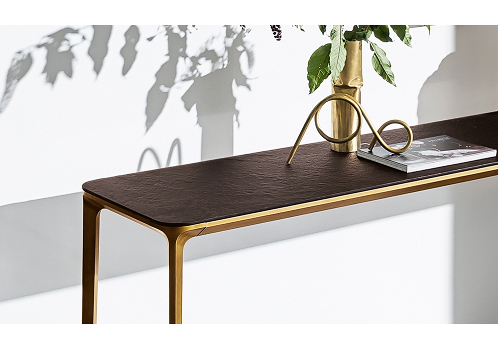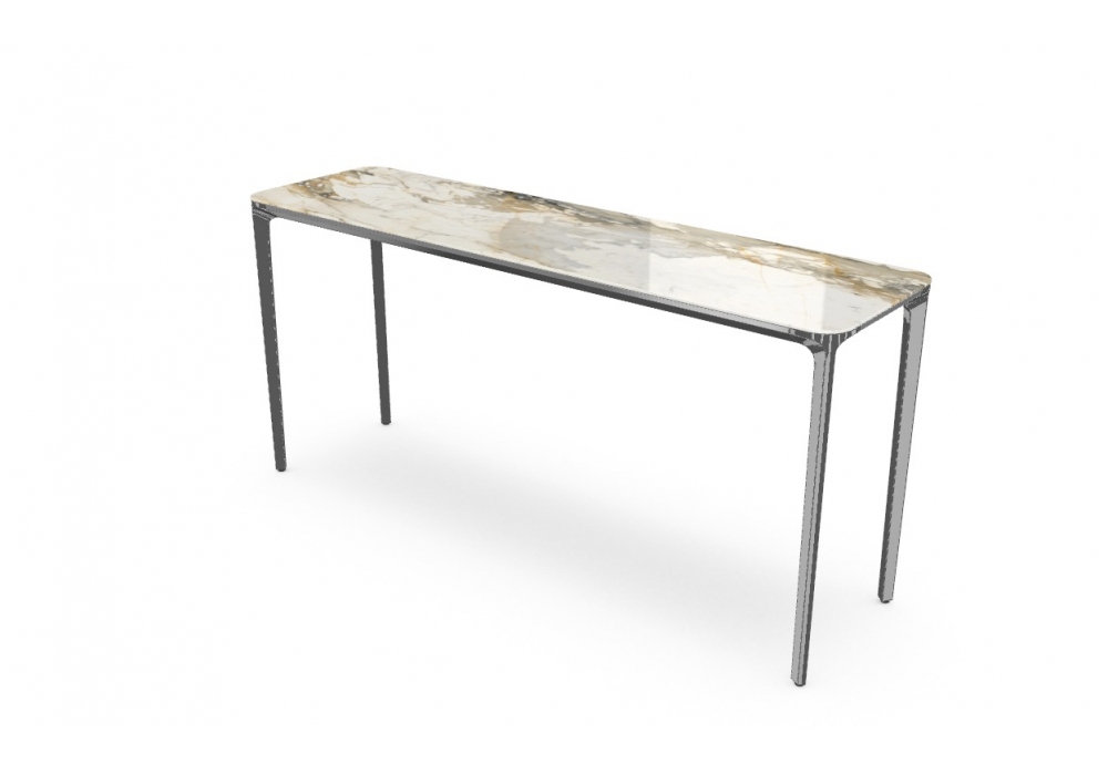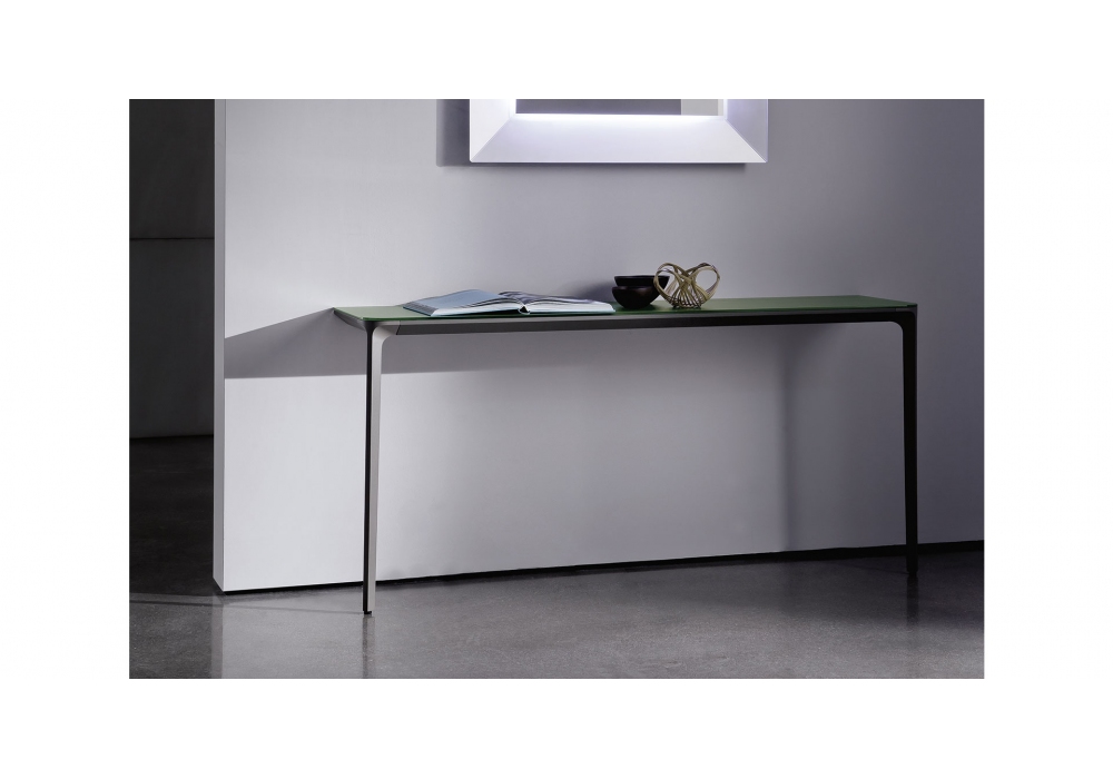 Slim diseñada por Matthias Demacker para Sovet es una consola con patas y estructura en aluminio, varios acabados. Tapa disponible en diferentes medidas, materiales y acabados.