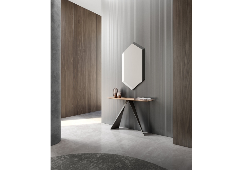 Bend diseñada por Christophe de Sousa para Gual Design es una consola con estructura en hierro pintado epoxi negro y tapa en MDF y madera contrachapada. Disponible en diferentes acabados.