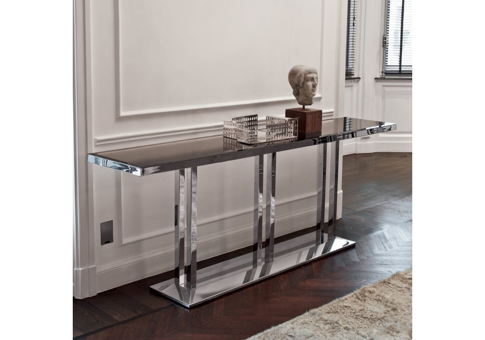 Artù diseñada por Giuseppe Viganò para Longhi es una consola con estructura en metal rectificado cortado con láser y tapa en mármol, cristal o espejo. Disponible en diferentes acabados y dimensiones.
