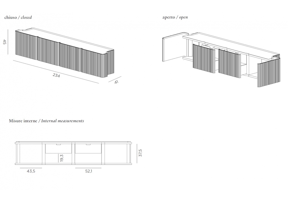 | Dimensiones | • 234 x 41 x H 45 cm |
