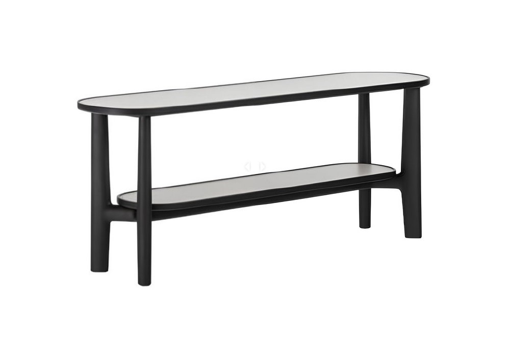 Rami Back Sofa diseñada por Tollgard & Castellani para Porada es una consola detrás del sofá con estructura en nogal canaletta macizo y tableros en madera, Cuoietto o Rock con borde en madera maciza.