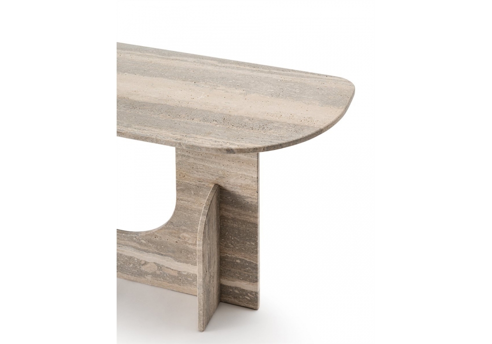 Selce diseñada por Studiopepe para Gallotti&Radice es una consola en piedra, disponible en diferentes acabados y medidas. Piezas metálicas lacadas. Se recomienda su colocación en la pared.