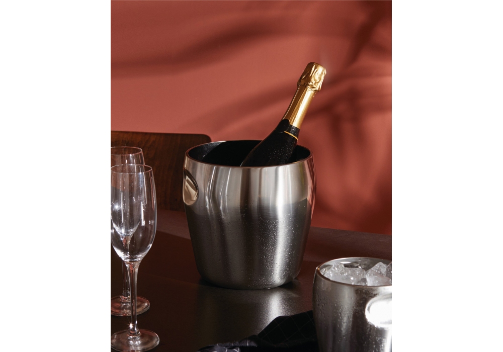872 diseñado por Luigi Massoni & Carlo Mazzeri para Alessi es un cubo para botella realizado en acero inoxidable 18/10, acabado pulido espejo.