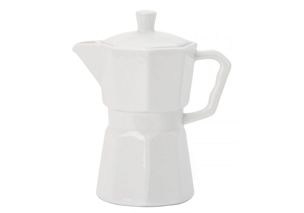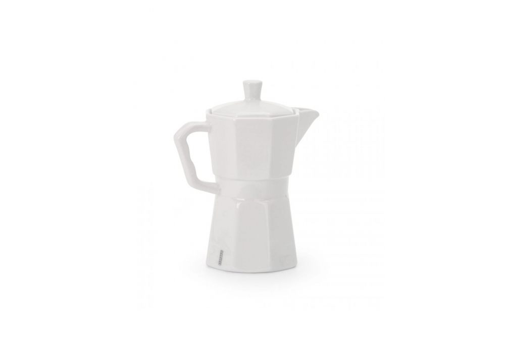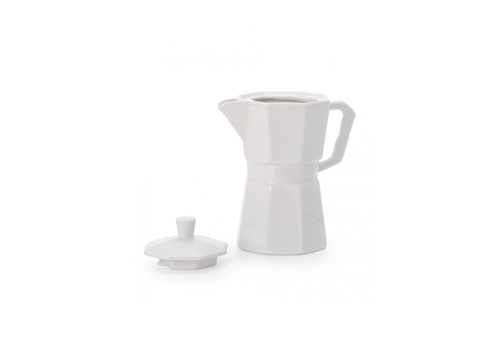 La cafetera diseñada por Selab & Alessandro Zambelli es una decoración en forma de cafetera con tapa extraíble íntegramente realizada en porcelana blanca.