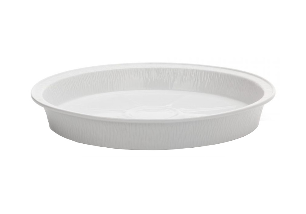 La bandeja para hornear diseñada por Selab & Alessandro Zambelli es una decoración circular realizada íntegramente en porcelana blanca.