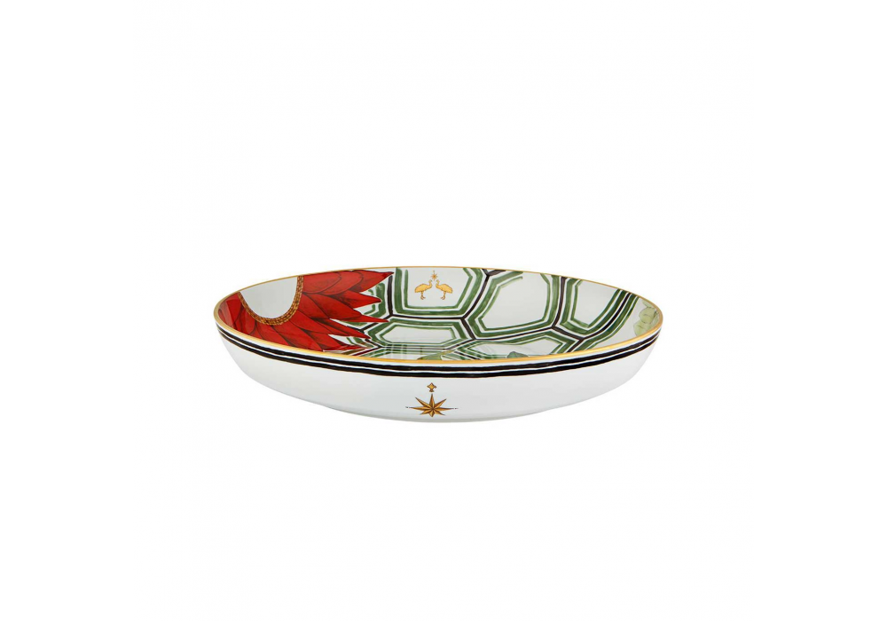 Amazonia diseñado por Vista Alegre con Ecoarts es un centro de mesa realizado en porcelana con decoraciones inspiradas en flora y fauna.