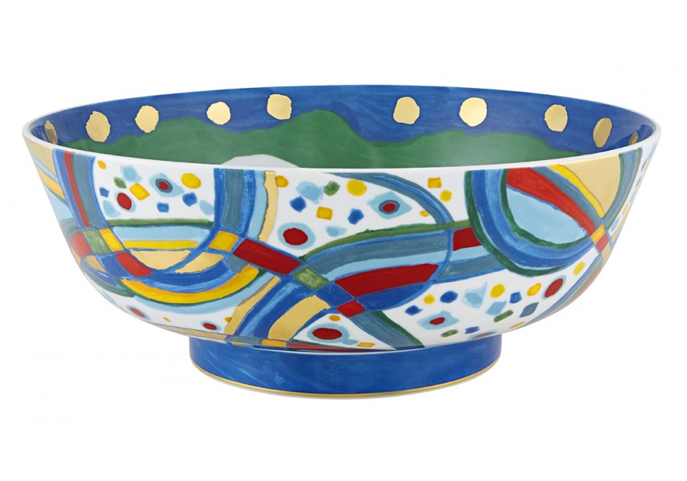 Ravello diseñado por Manuel Cargaleiro para Vista Alegre es un centro de mesa realizado en porcelana pintada a mano.