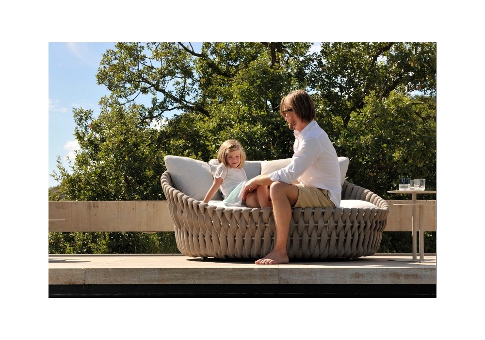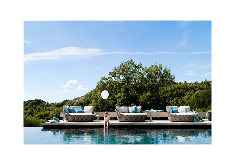 Tosca diseñado por Monica Armani para Tribù es un diván con cuerpo en acero inoxidable pintado en polvo y cubierto con un tejido vertical extra grande, en textileno y poliolefina. Los cojines del respaldo y del asiento están acolchados y disponibles con diferentes tapizados.