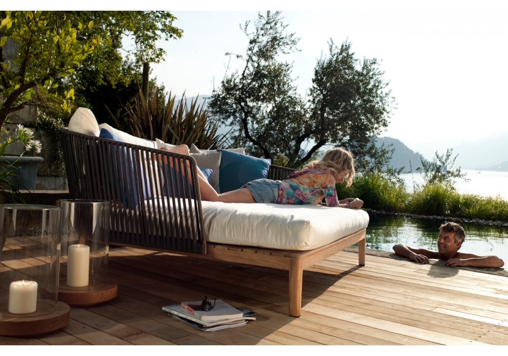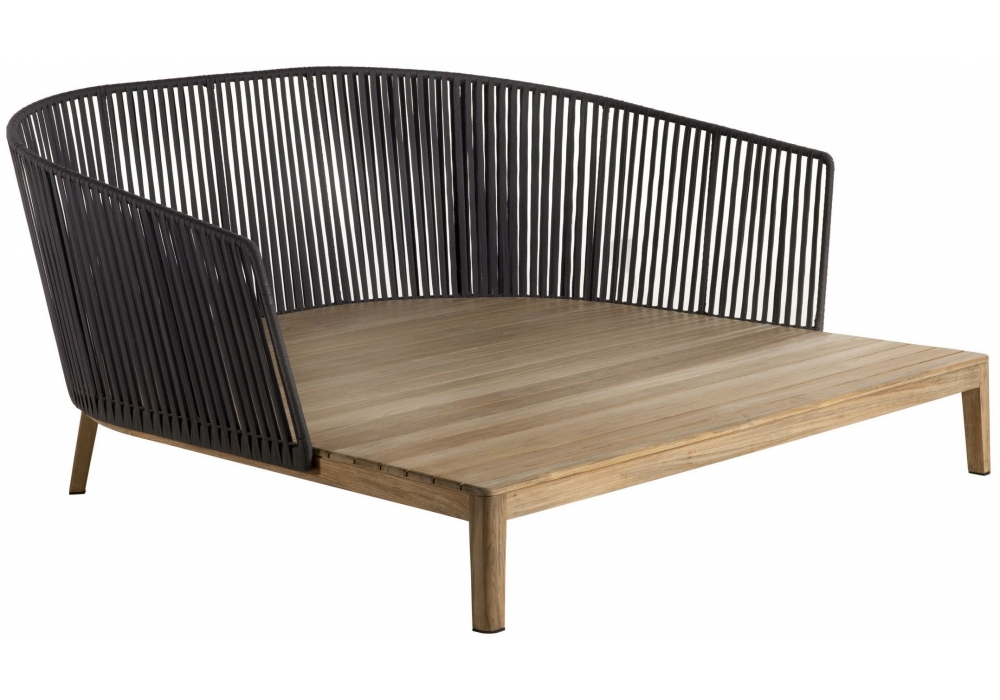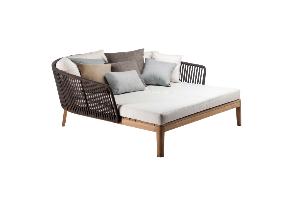 Mood diseñado por Studio Segers para Tribù es un diván con estructura de teca y carcasa tejida Tricord, en diferentes acabados. El cojín del asiento está acolchado y tapizado con diferentes tejidos y colores.