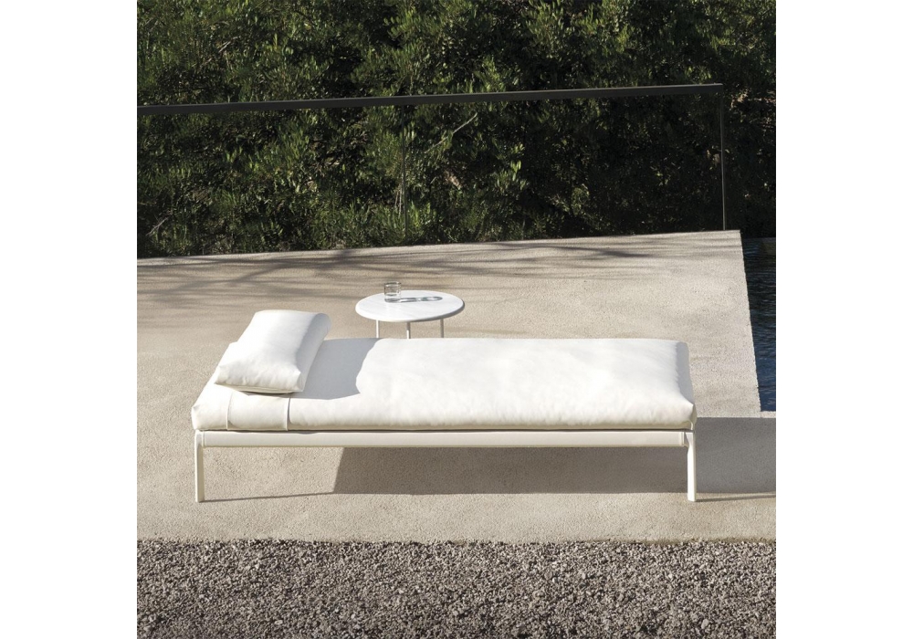 Livit diseñado por Lievore Altherr Molina para Expormim es un daybed para exterior estructura y patas en aluminio de alta resistencia. Revestimiento en tejido desmontable.