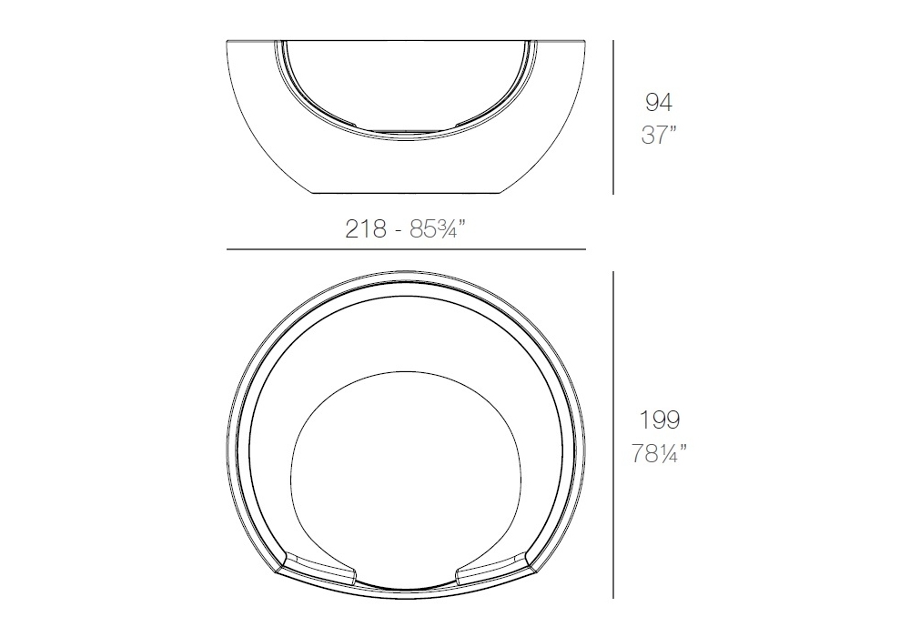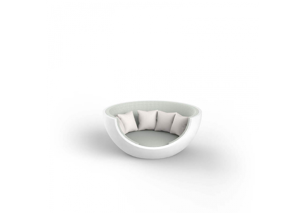 Moon diseñado por Ramón Esteve para Vondom es un daybed de forma semicircular con sistema giratorio en el que descansa su base, lo que permite que la pieza gire sobre su propio eje. La base es realizada en polietileno moldeado por rotación con la posibilidad de retroiluminación LED. Moon es una pieza ideal para ambientes de ocio o chill-out.