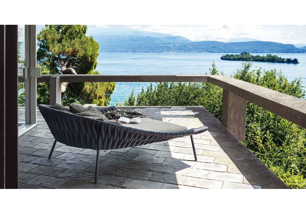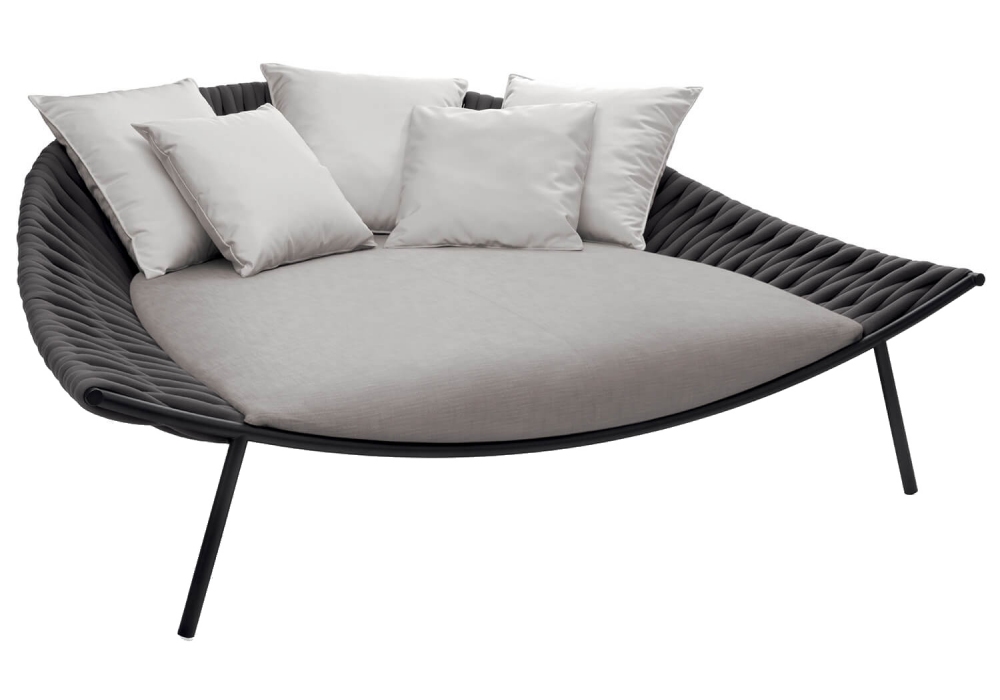 Arena diseñada por Gordon Guillaumier para Roda es un diván de exterior compuesto por estructura de acero inoxidable con recubrimiento en polvo tapizado con cinturón acolchado de poliéster y asiento acolchado.