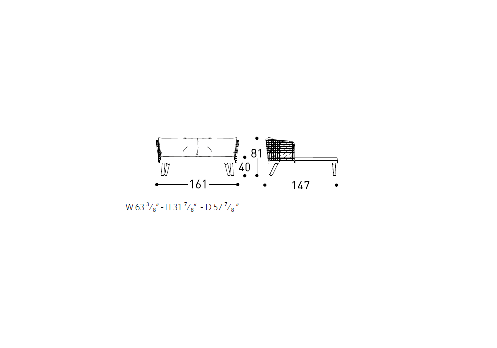 Emma diseñado por Monica Armani para Varaschin es un diván con respaldo con patas en aluminio o iroko macizo. Asiento tapizado en tela con estructura de asiento en polipropileno. Respaldos con marcos entrelazados de aluminio pintado en polvo o de madera contrachapada para exteriores y revestidos de tela. Disponible en diferentes acabados.